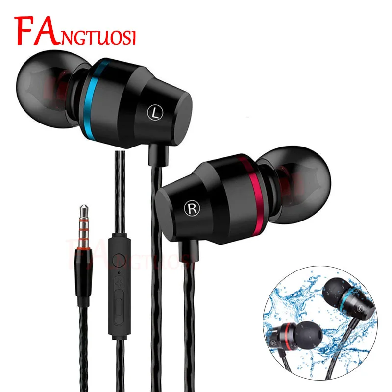 FANGTUOSI Professional проводные наушники 3,5 мм Металл в ухо гарнитура с микрофоном Тяжелый Бас Звук Музыка Спорт гарнитура для iPhone XR