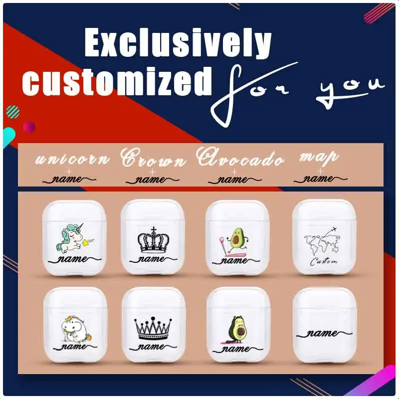 Милый рисунок единорога жесткий наушник чехол для Apple Airpods Защитные Чехлы DIY Имя Заказной Прозрачный чехол для наушников Airpods