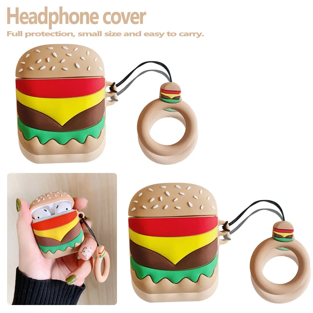Bluetooth беспроводной чехол для наушников гамбургер жесткий чехол с дизайном для Airpods защитный чехол креативный чехол для наушников