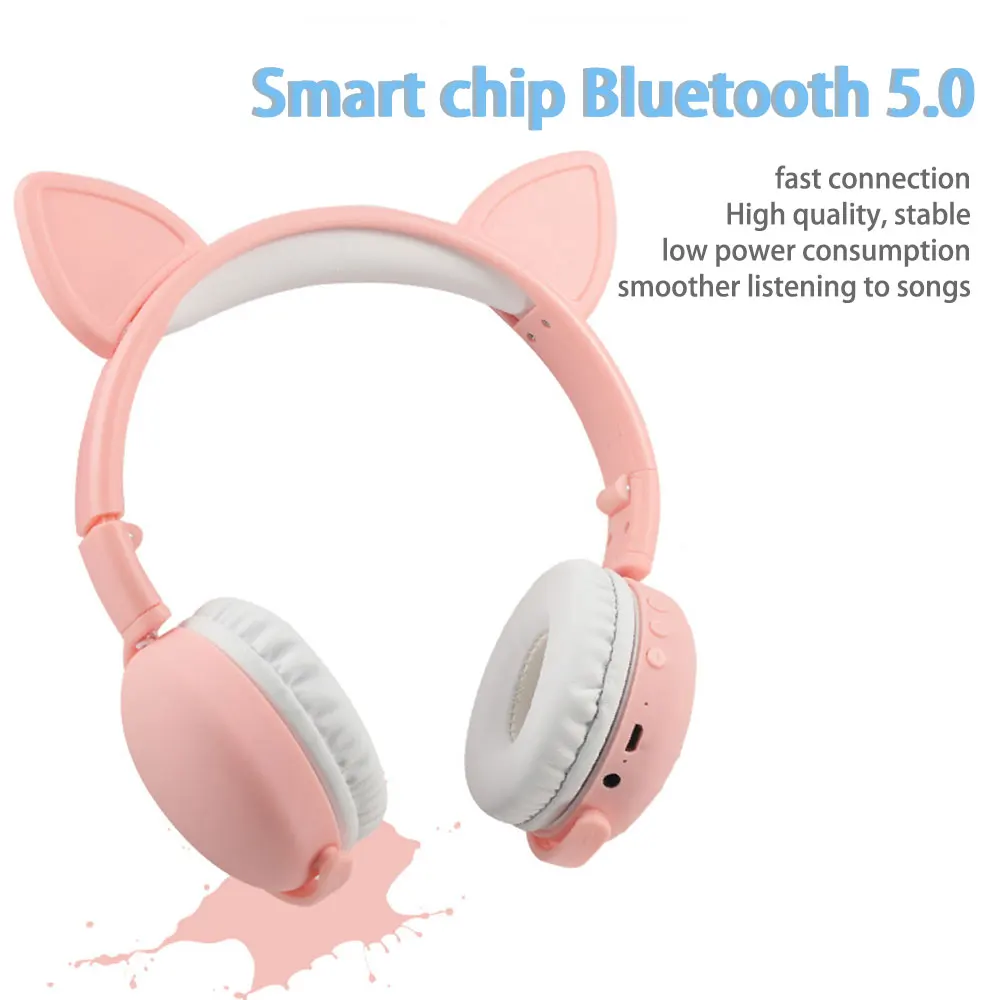 Bluetooth 5,0 наушники для детей, девочек, складные наушники с шумоподавлением, милые кошачьи наушники, стерео гарнитура с микрофоном