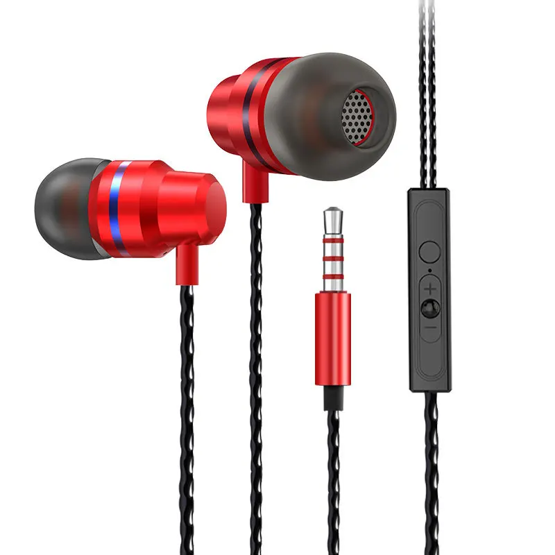 Из металла на плоском проводе наушники 3,5 мм проводные наушники-вкладыши стерео сабвуфер с микрофоном для MP3/pad/телефон