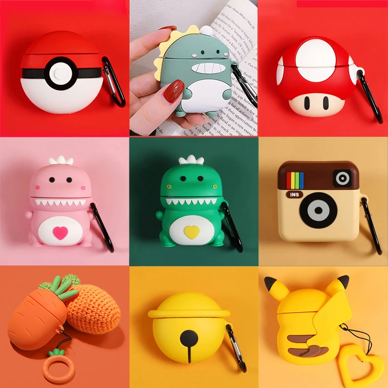 Bluetooth наушники чехол для Airpods 2 аксессуары защитный чехол сумка анти-потеря кольцо ремень милый мультфильм силиконовый 3D гриб