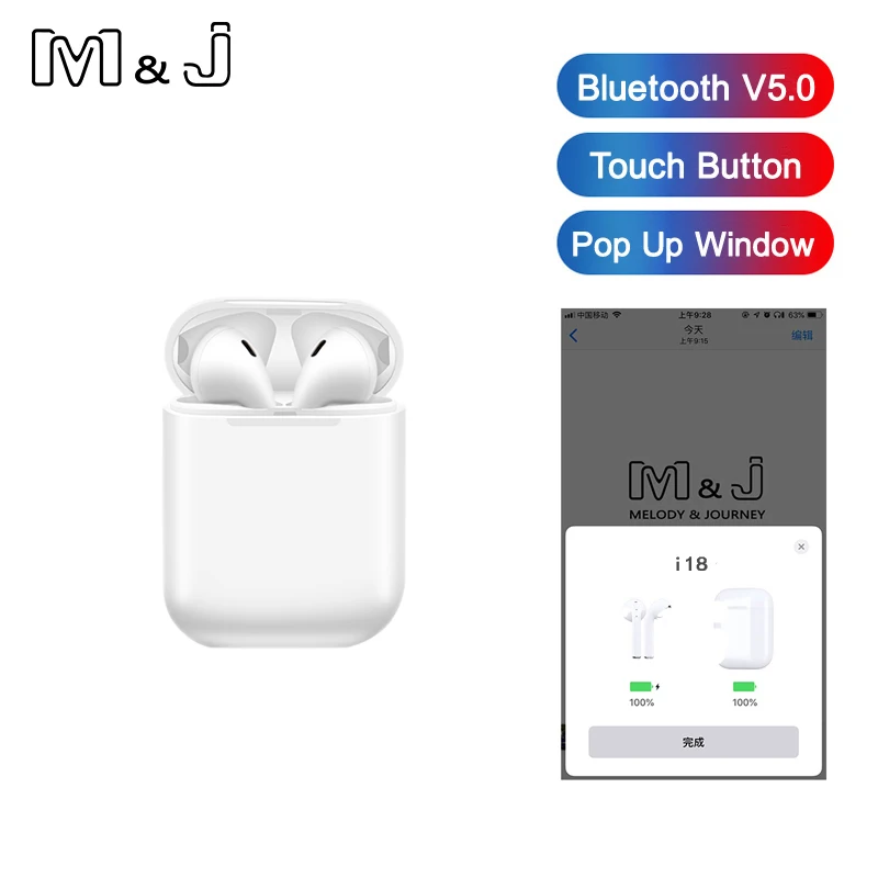 I18 СПЦ Bluetooth 5,0 наушники 1:1 беспроводной air Touch Управление гарнитура 3D стерео для i10 СПЦ i12 Xiaomi i20 pod