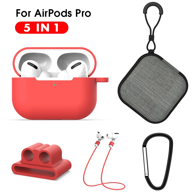 5 в 1 защитный чехол для Air pods Pro мягкий силиконовый ремешок карабин футляр для наушников для Airpods 3 pro аксессуары коробка для хранения