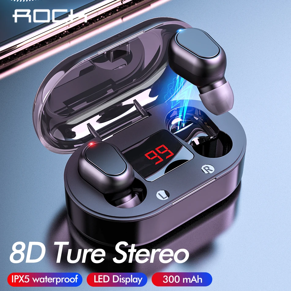 ROCK Bluetooth V5.0 наушники 8D Ture стерео наушники спортивные микрофон водонепроницаемые беспроводные наушники со светодиодный дисплеем зарядная коробка