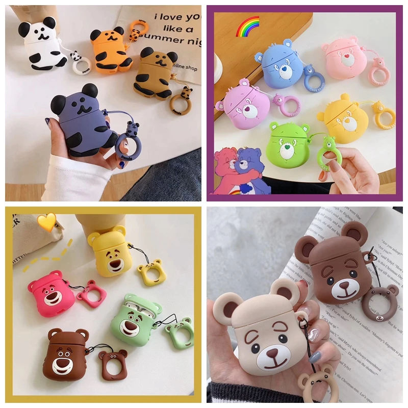Для AirPods 1/2 чехол милый мультфильм Радуга Медведь кожухи головных телефонов для Apple Airpods 2 ins стиль защитный чехол с пальчиковым кольцом ремен...