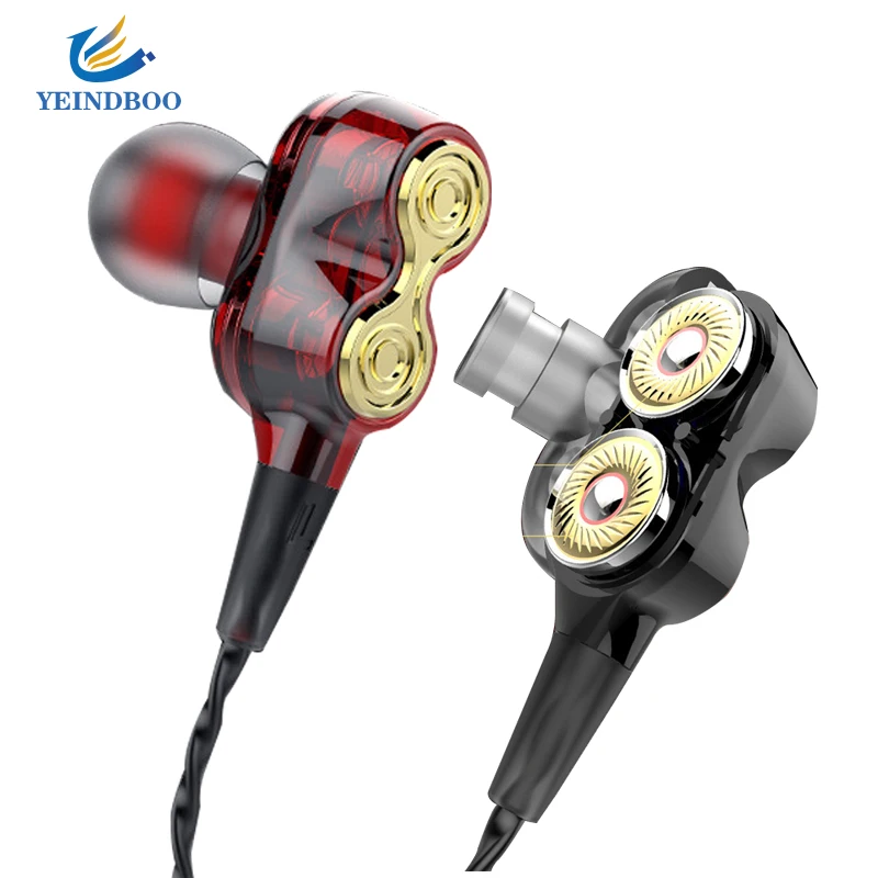 4 ядра двойного действия кольцо наушники бас 3,5 мм в ухо провода контролируемой музыки HIFIi металл с микрофоном наушники для телефона Xiaomi науш...