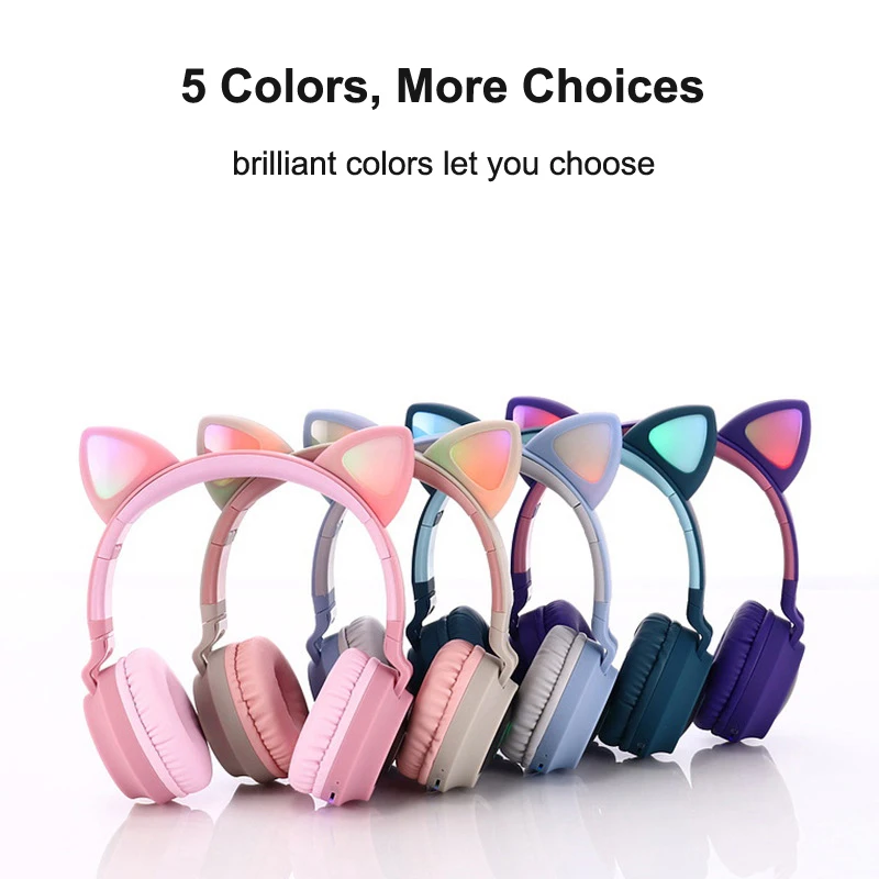 2020 Новые Bluetooth стерео кошачьи наушники, светящиеся кошачьи наушники, игровая гарнитура, наушники, 7 видов цветов, светодиодная лампа