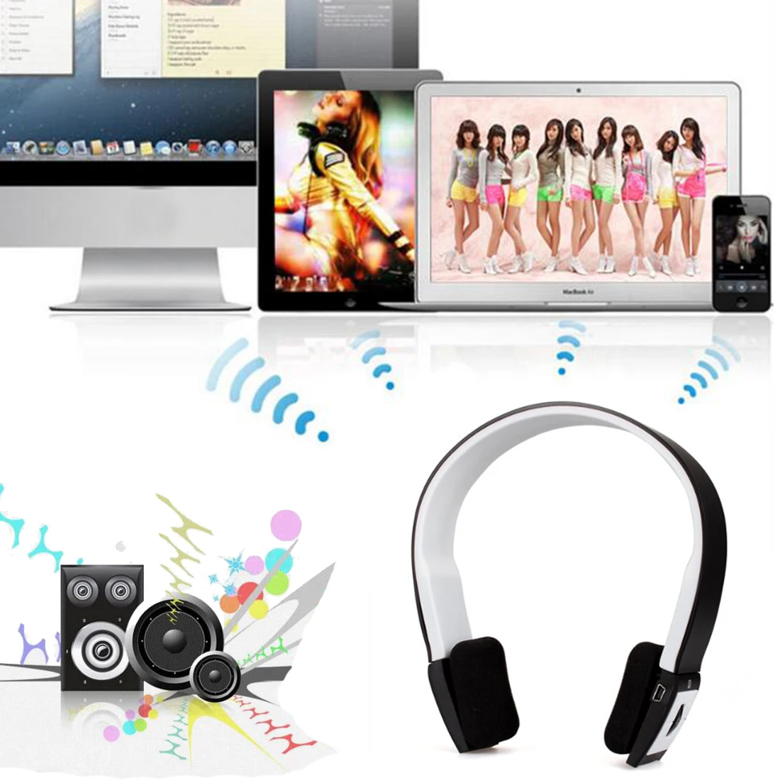 HIFI стерео металлические беспроводные наушники портативная гарнитура FM и Over-ear регулируемая с микрофоном для iphone samsung смартфон
