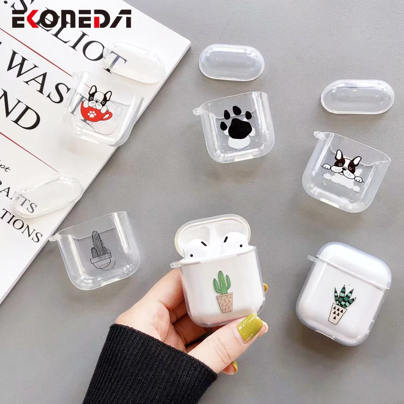 EKONEDA чехол с рисунком мультяшной собаки кактуса для Airpods 2 Силиконовый мягкий ТПУ чехол Прозрачный чехол для Airpods чехол