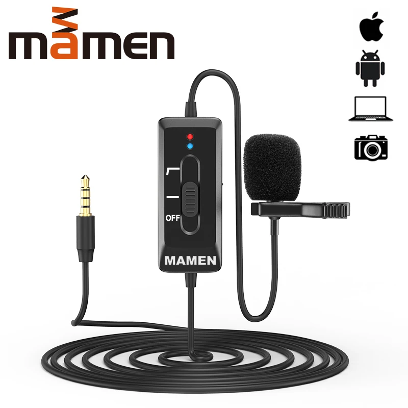 2019 MAMEN 3,5 мм Аудио Видео Запись петличный микрофон для iPhone Android Mac Vlog микрофон для DSLR видеокамеры рекордер