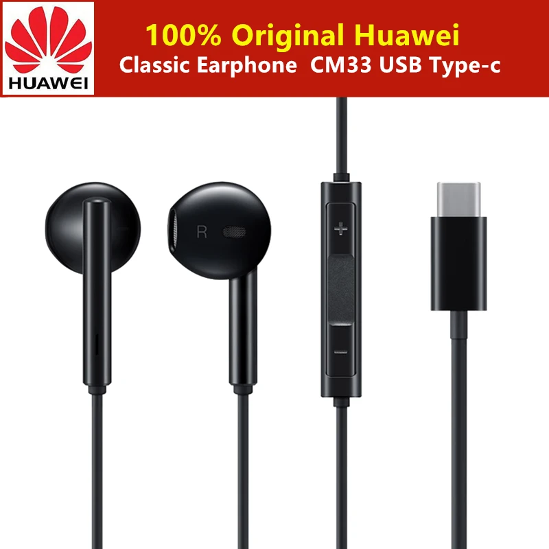 Оригинальные Классические наушники huawei CM33 в ухо тип-c разъемы гарнитура с управлением стерео для P20 P30 pro mate 10 honor 9