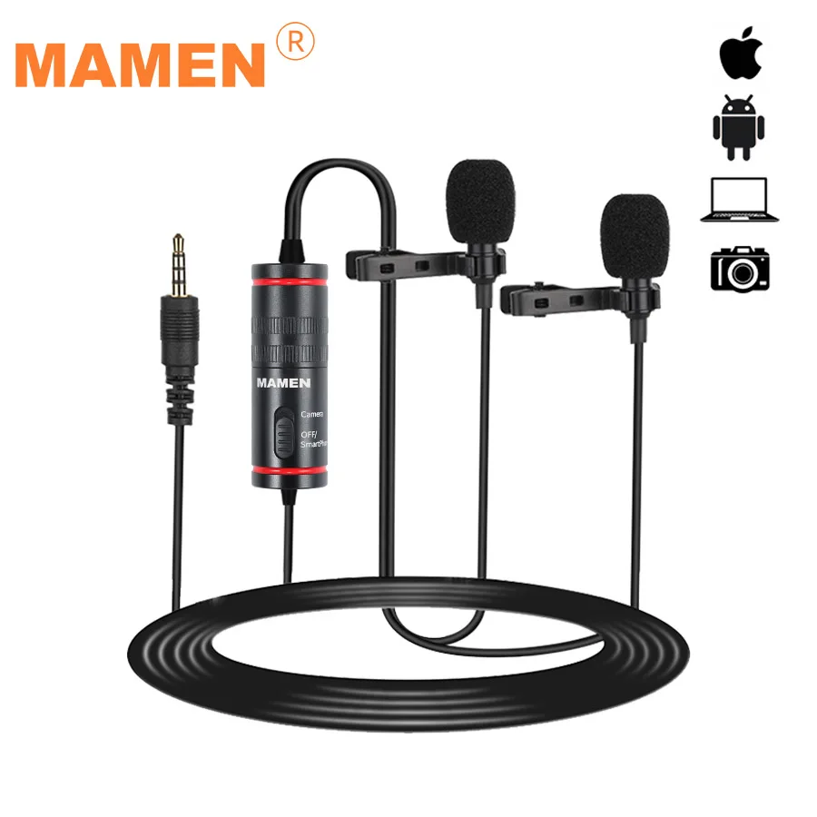MAMEN 4,2 M Двойная Головка Lavalier Клип-на лацкане микрофон конденсатор Vlog Mic запись видео Mikrofo/Microfon для смартфона DSLR