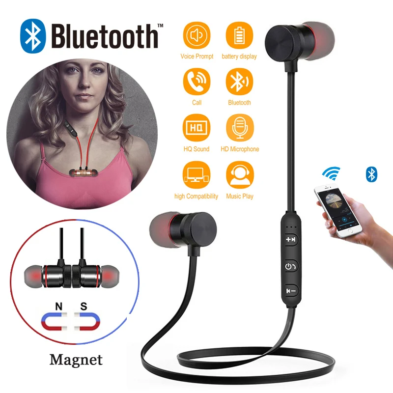 Спортивные Bluetooth наушники с Bluetooth 4,1 беспроводные металлические наушники с отличной низкой звуковой частотой наушники для Xiaomi магнитные нау...