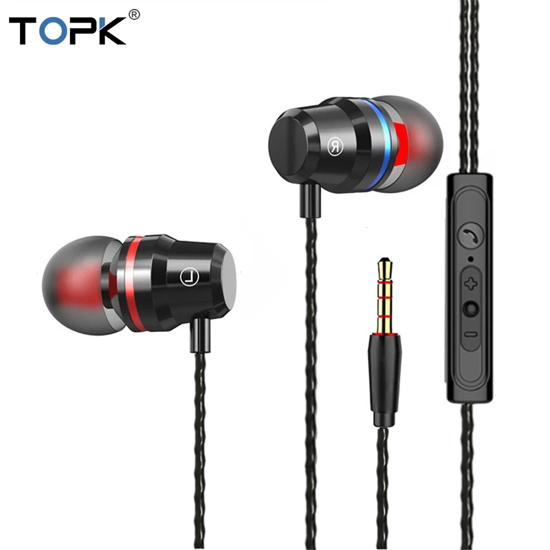TOPK F16 наушники-вкладыши для iPhone Xiaomi samsung huawei телефон 3,5 мм Проводная стерео бас гарнитура с микрофоном