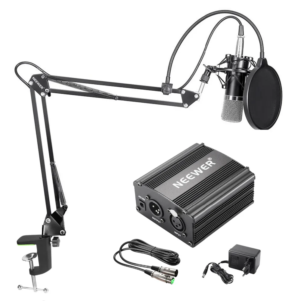 Neewer NW-800 конденсаторный микрофон и NW-35 Ножничные Подставка для рук XLR кабель и монтажный зажим и NW-3 поп-фильтр Phantom Adapter Kit