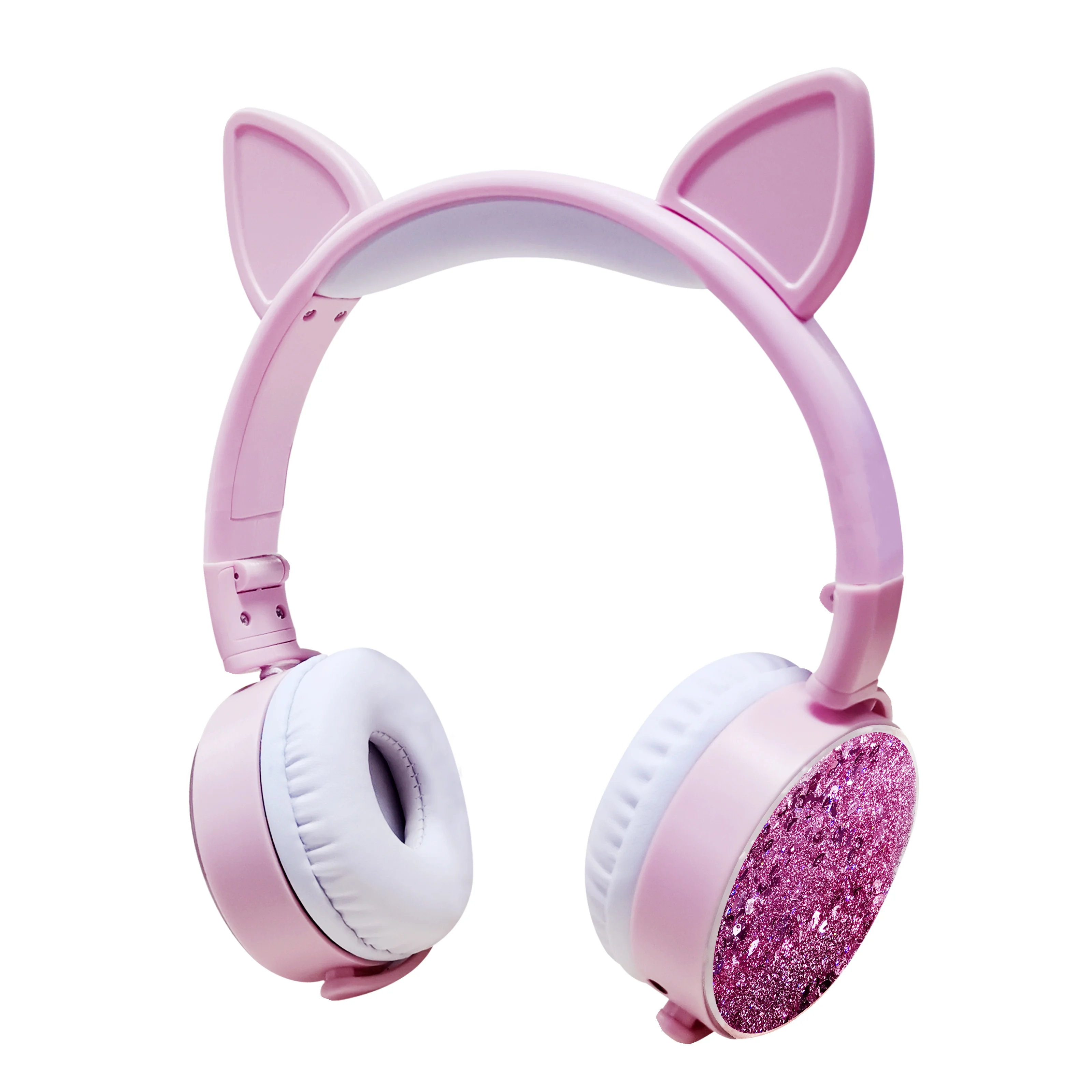Новые проводные наушники с кошачьими ушками, блестящая стильная женская музыкальная игровая гарнитура для девочек, мобильный телефон, компьютер, ПК, разъем 3,5 мм