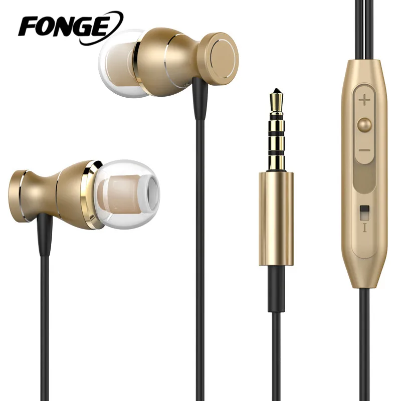 Fonge Магнитная Наушники металлические наушники гарнитуры Лидер продаж 3.5 мм супер бас стерео наушники с микрофоном для мобильного телефона ...