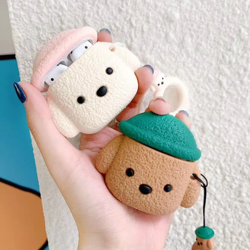 Bluetooth наушники чехол для Airpods милые аксессуары чехол для Airpods 2 Силиконовый 3D дизайн с кольцом ремень гранулы Тедди собака