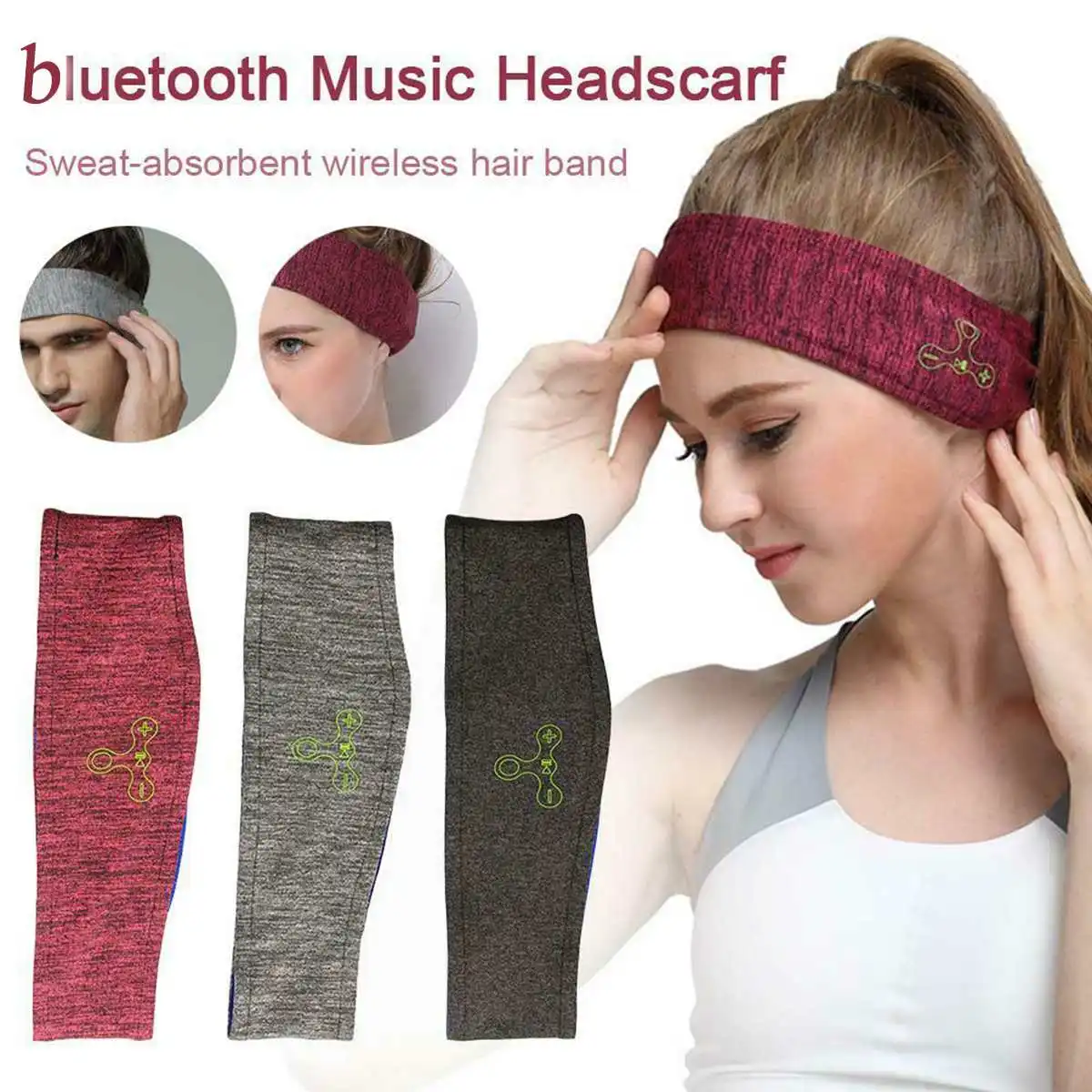 Беспроводной bluetooth Вязание музыка оголовье гарнитура сна Спорт головной платок Бег Йога тренажерный зал телефон наушники