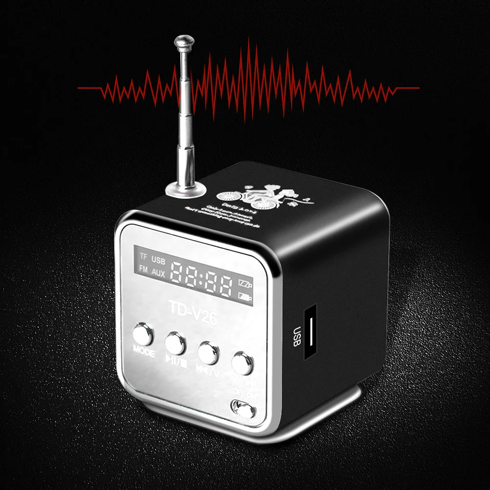 TD-V26 Мини Радио FM цифровой портативный колонки с FM приемник Поддержка SD/TF карты для Mp3 плеера зарядка через usb