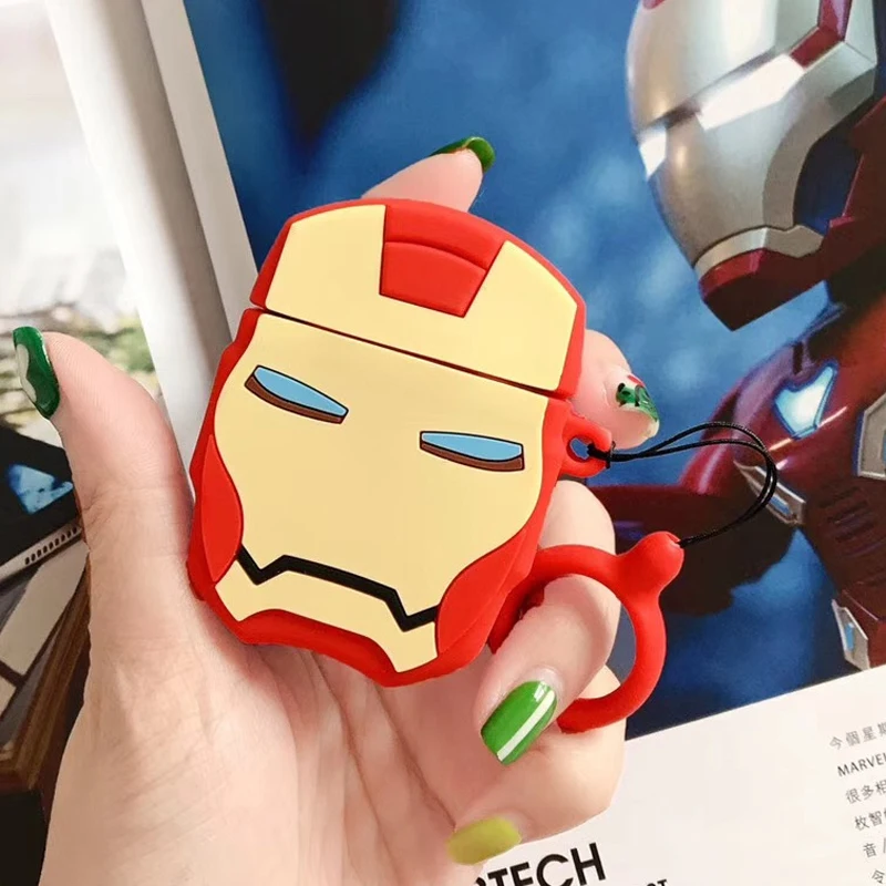 3D Железный человек Супермен кожухи головных телефонов для AirPods 2 Чехол милый мультфильм для Apple Air Pods защитный чехол для Earpods Силикагель Чехол