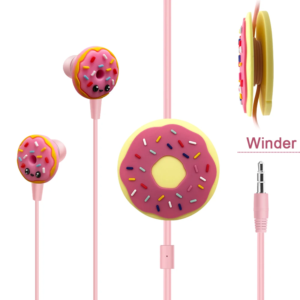Забавные проводные наушники с пончиком, 3,5 мм разъем для телефона, наушники с кабельным органайзером для iPhone, samsung, huawei, подарки для девочек