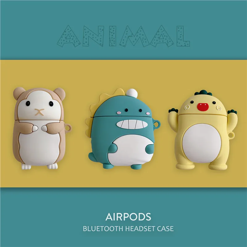 Милый чехол для AirPods 2, силиконовый чехол для наушников с мультяшными животными для Apple Air Pods, чехол с милой белкой и динозавром для AirPods, чехол