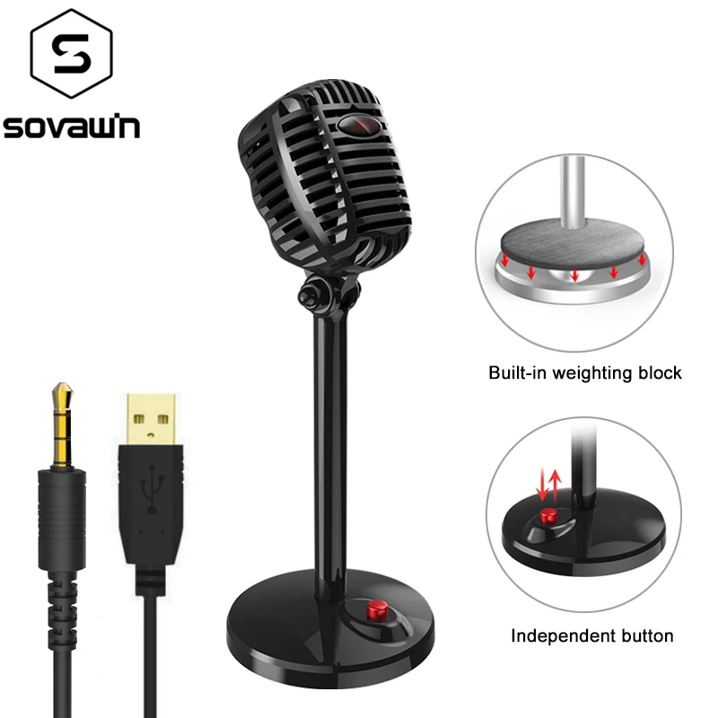 Караоке микрофон проводной Studio HD Шум отмена конденсаторный настольный USB 3,5 мм Mircophone для компьютера Профессиональный Ретро Mic