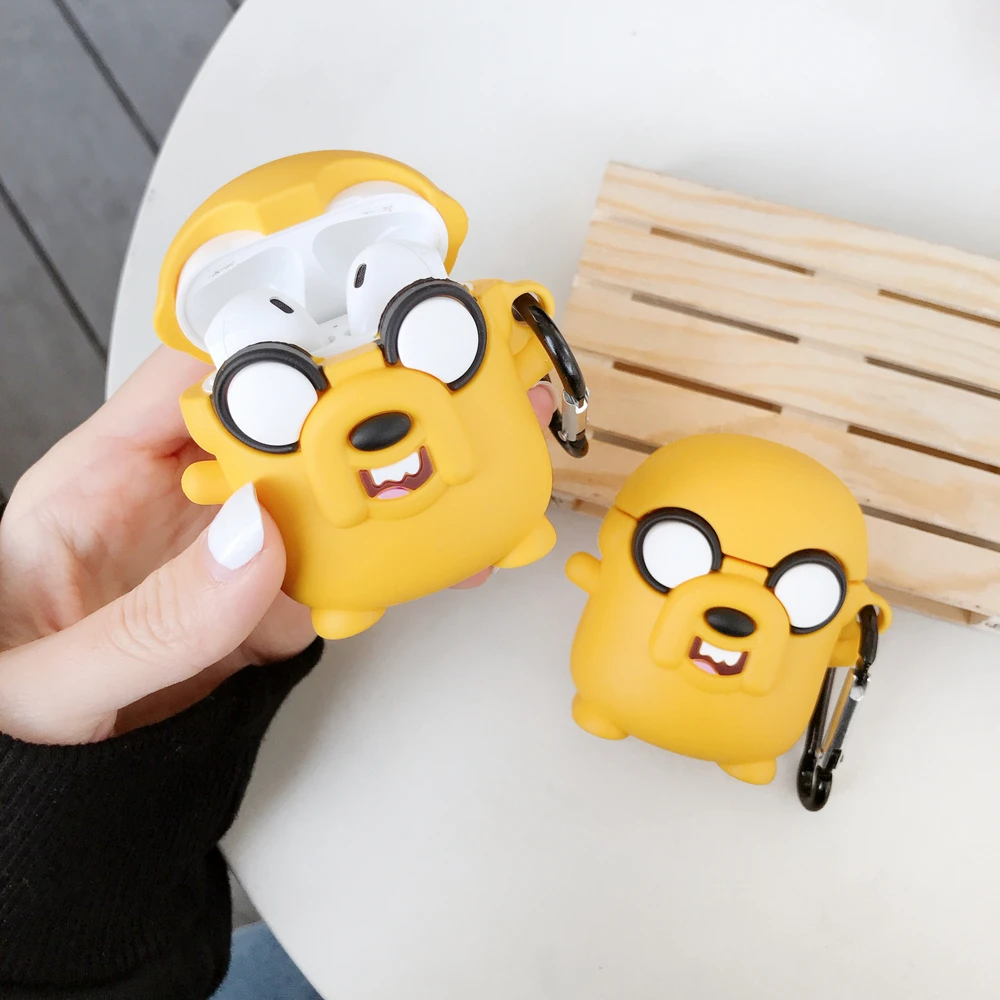 Силиконовый чехол для наушников с изображением милого Джейка собаки из мультфильма «Время приключений» для AirPods 1 2, Защитная крышка для bluetooth-гарнитуры с крючком