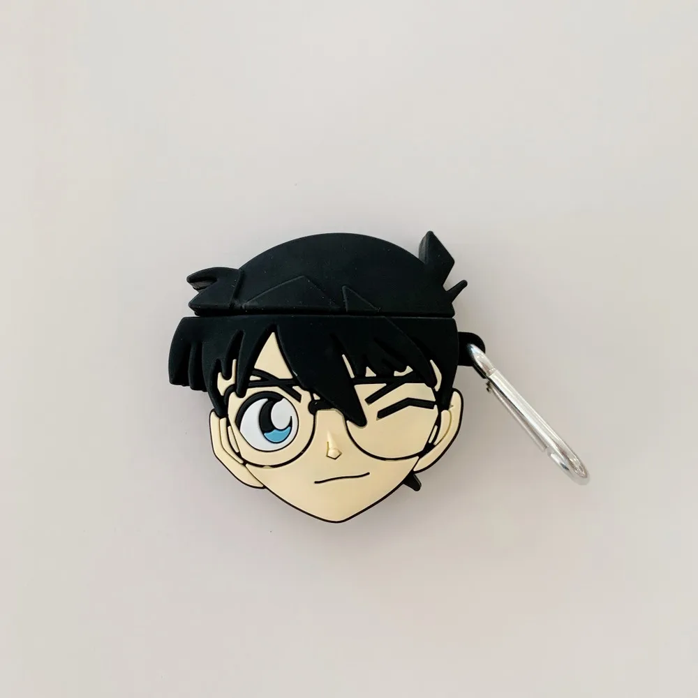 Аниме детектива Конана наушники силиконовый чехол для AirPods 1 2 Bluetooth гарнитура зарядная коробка Наушники Защитная крышка с крючком