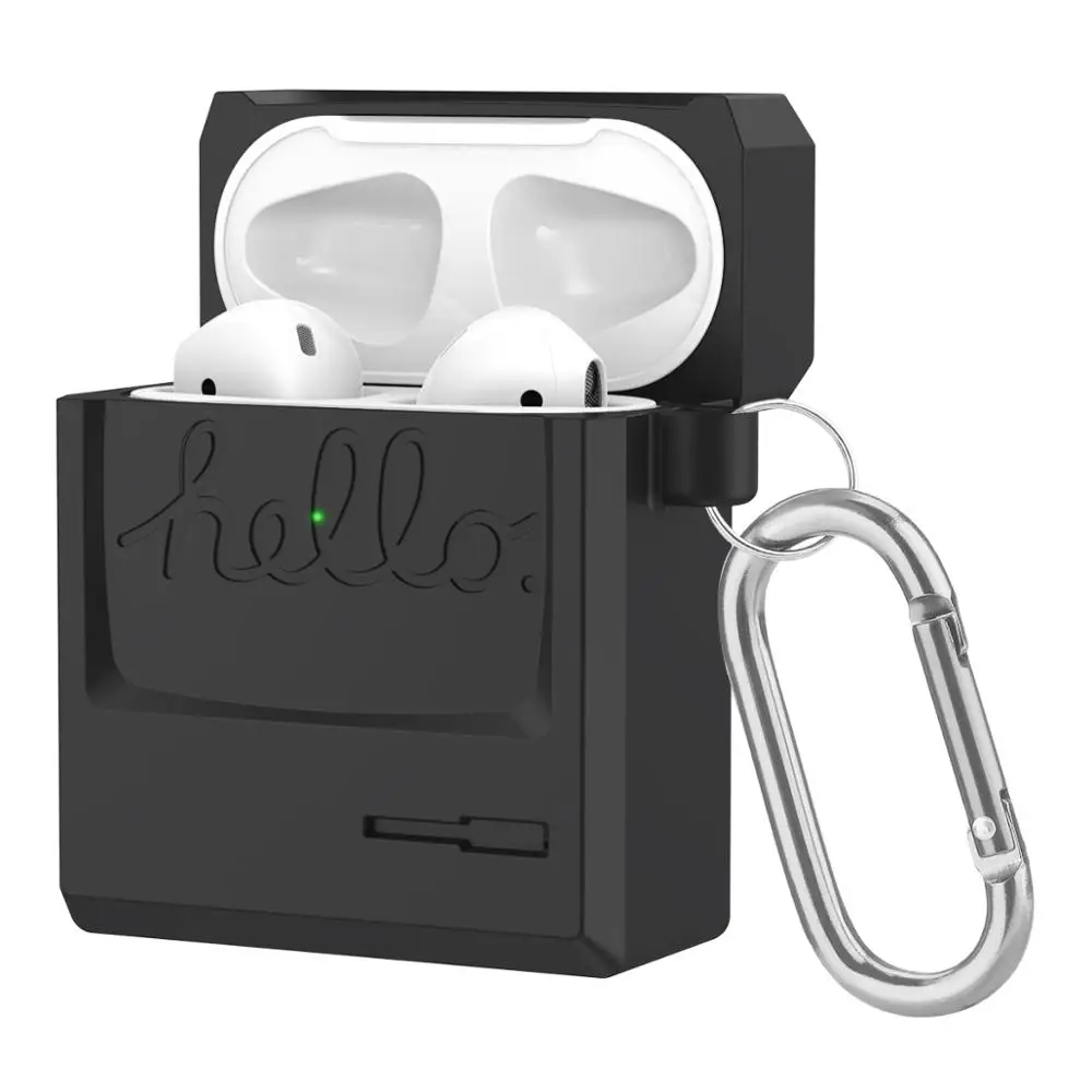 Универсальный силиконовый чехол для наушников в форме квадратной коробки в стиле ретро для Airpods 1, 2, металлический держатель с кольцом, полн...