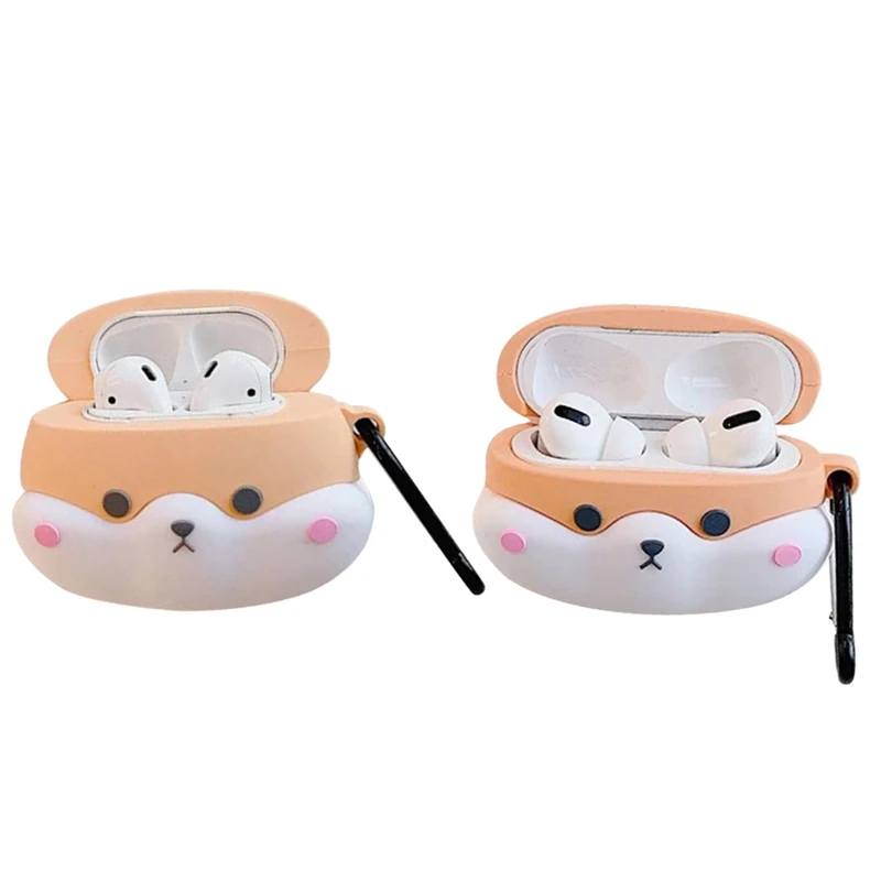 Чехол с мультяшным изображением Шиба ину для AirPods 1/2, Silcone, Bluetooth, чехол для наушников AirPods, милая Желтая Собака, Защитная крышка с крючком