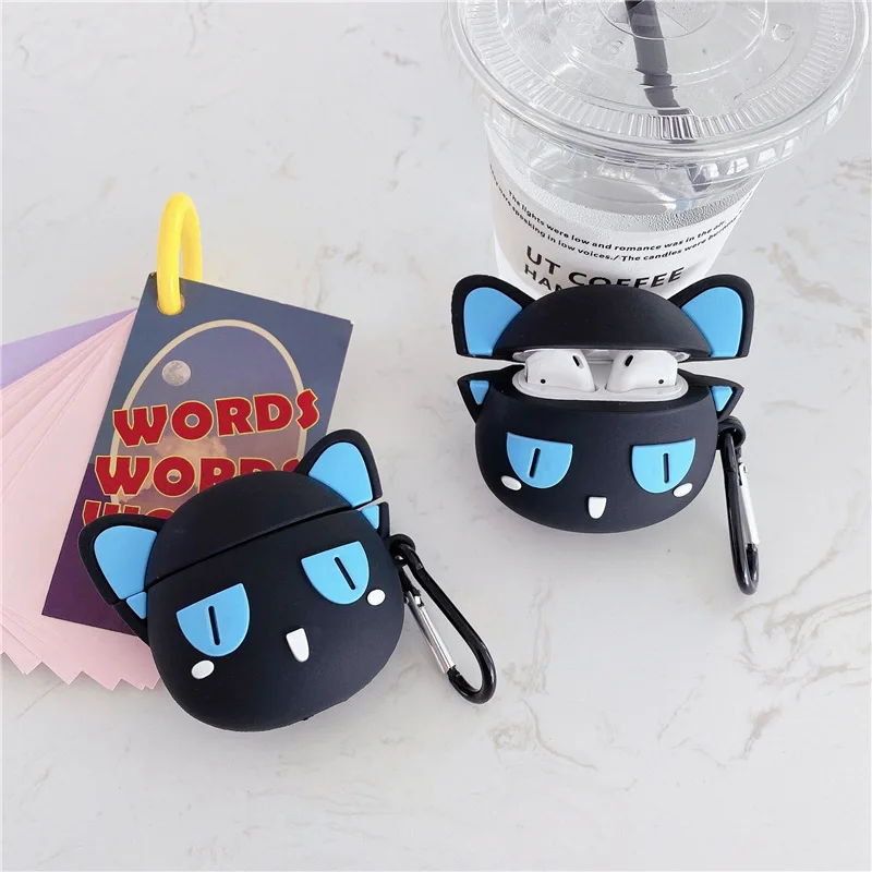 Черный милый чехол с кошкой для Airpods 1 2 Чехол беспроводной Bluetooth для Apple Airpod силиконовый чехол для Air Pods Fundas Capa Coque