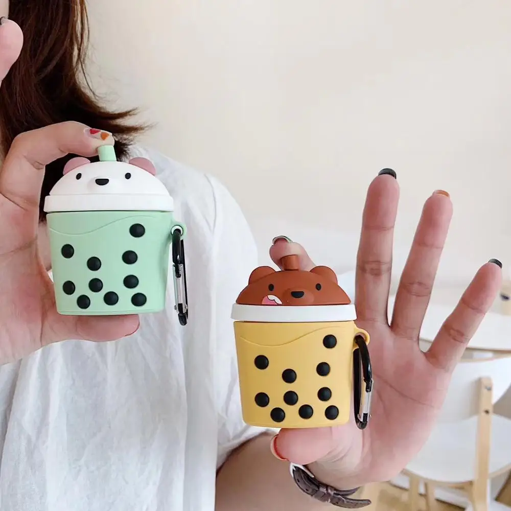 3D Bluetooth наушники чехол для Airpods милый защитный чехол для Airpods 2 аксессуары с брелком стереоскопический жемчужный молочный чай