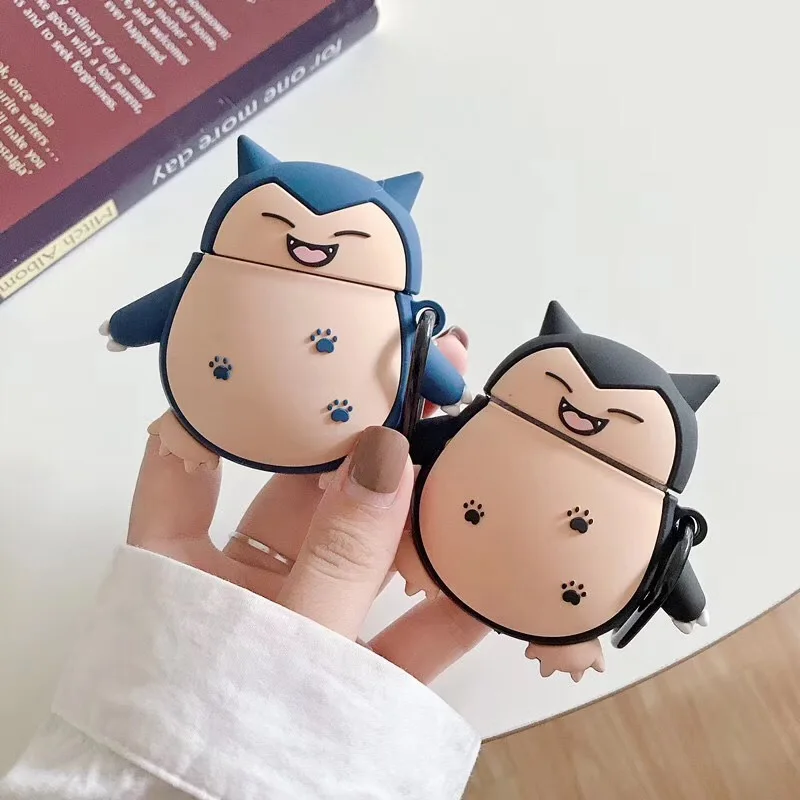 3D чехол для AirPods мультяшный наушник Чехлы для Apple Airpods 2 милые аксессуары защитный чехол с брелком милый дизайн Snorlax