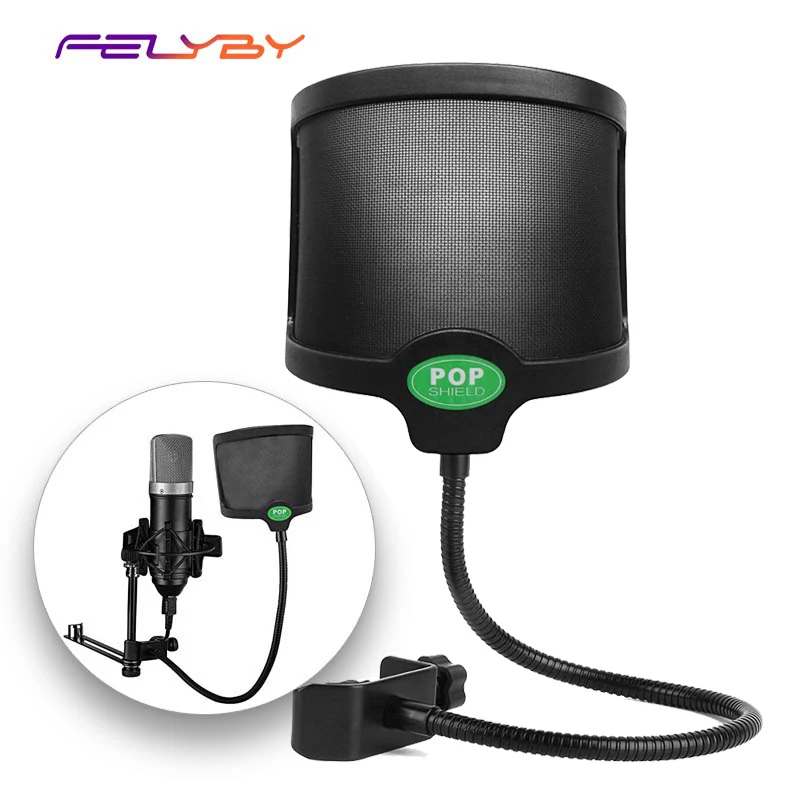 FELYBY конденсаторный микрофон, поп-фильтр щит ветер экран Универсальный микрофон Стенд монтажа Blowout Preventer кронштейн