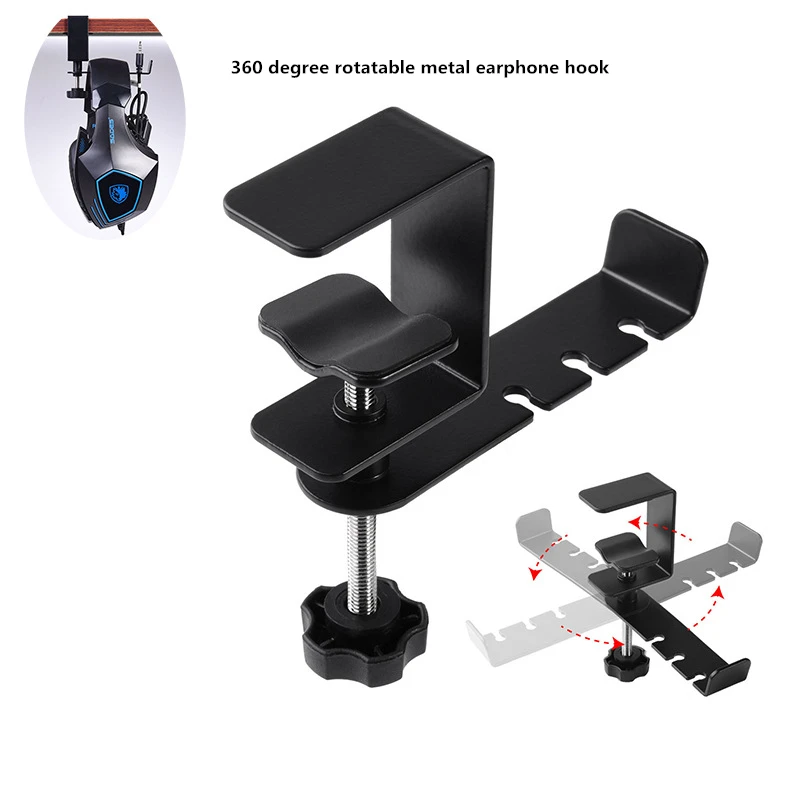 Универсальная игровая гарнитура для ПК, держатель для крюк для наушников, подставка для крепления с регулируемым зажимом под столом, вращающийся на 360 градусов