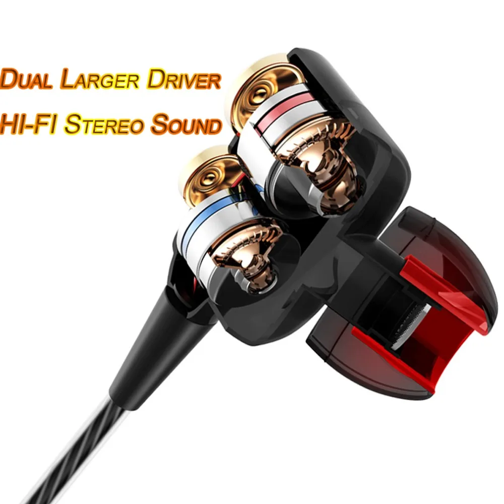 Мода двойной наушники для водителей высокий бас, стерео наушники гарнитуры проводные наушники 3,5 мм с микрофоном для Meizu Xiaomi sony