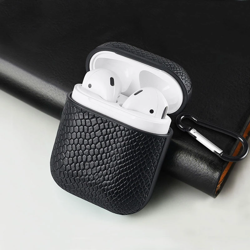 VETOMEET Роскошные змеиная кожа Bluetooth беспроводные наушники чехол для Apple Airpods зарядная коробка крышка Крюк дизайн ультра тонкий