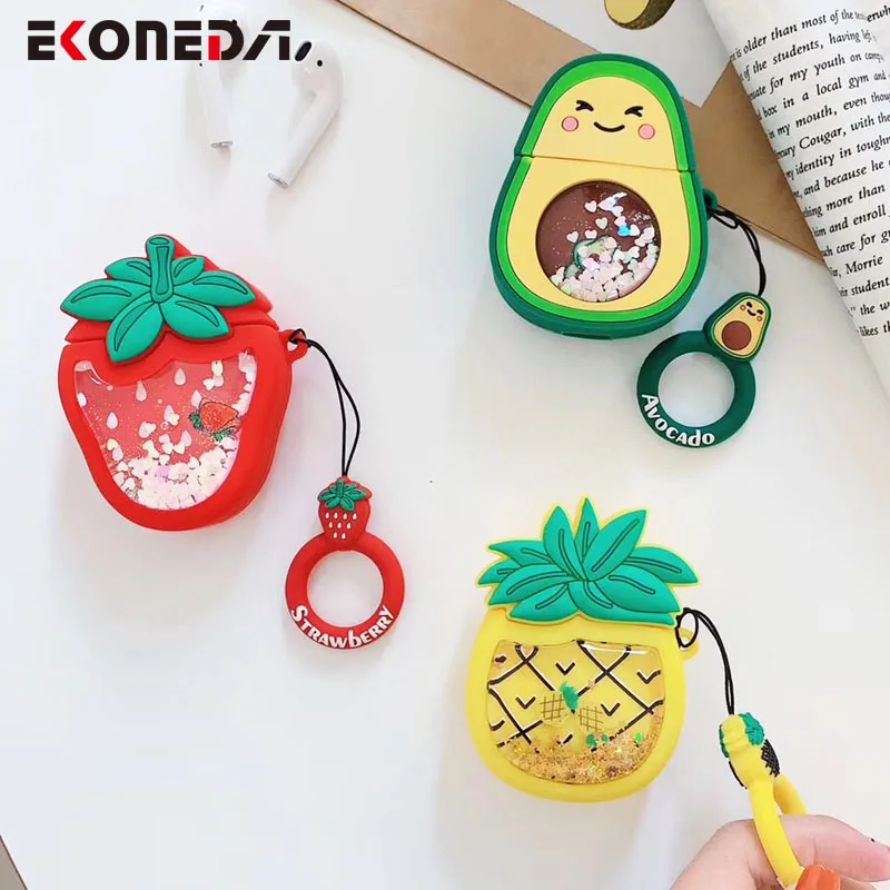 EKONEDA жидкий Блестящий Защитный чехол для Airpods клубника, ананас авокадо силиконовый чехол для Airpods чехол