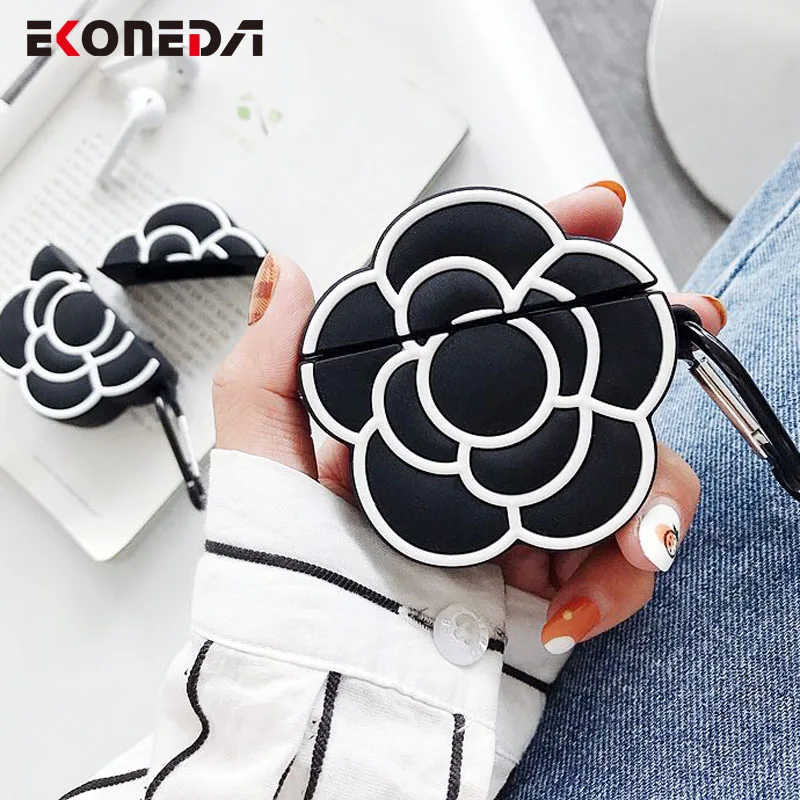 Защитный чехол EKONEDA Black Camellia для Airpods, силиконовый мягкий чехол с цветочным рисунком для девочек, Airpods