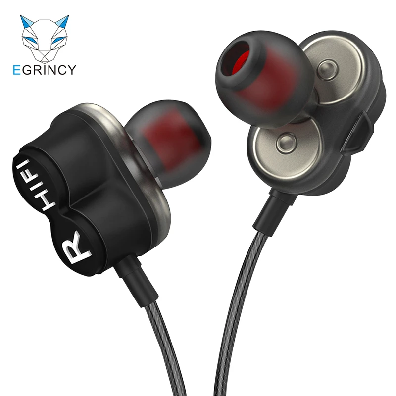 EGRINCY двойной Динамический драйвер наушники Super Bass спортивные наушники 3,5 мм AUX разъем для гарнитуры С микрофоном музыкальные наушники для ...