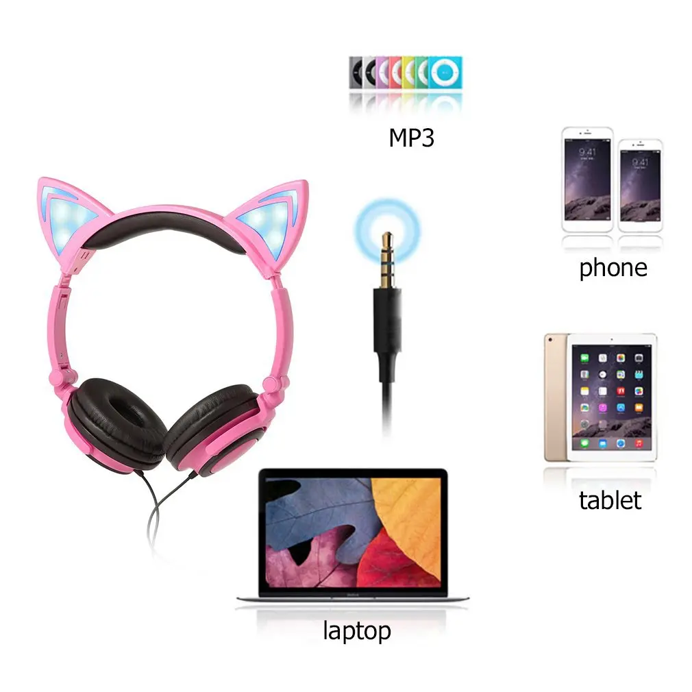 LX-Y05 креативные наушники для домашнего использования в офисе персональный дизайн кошачьи наушники светящиеся складные супер стерео гарнитуры