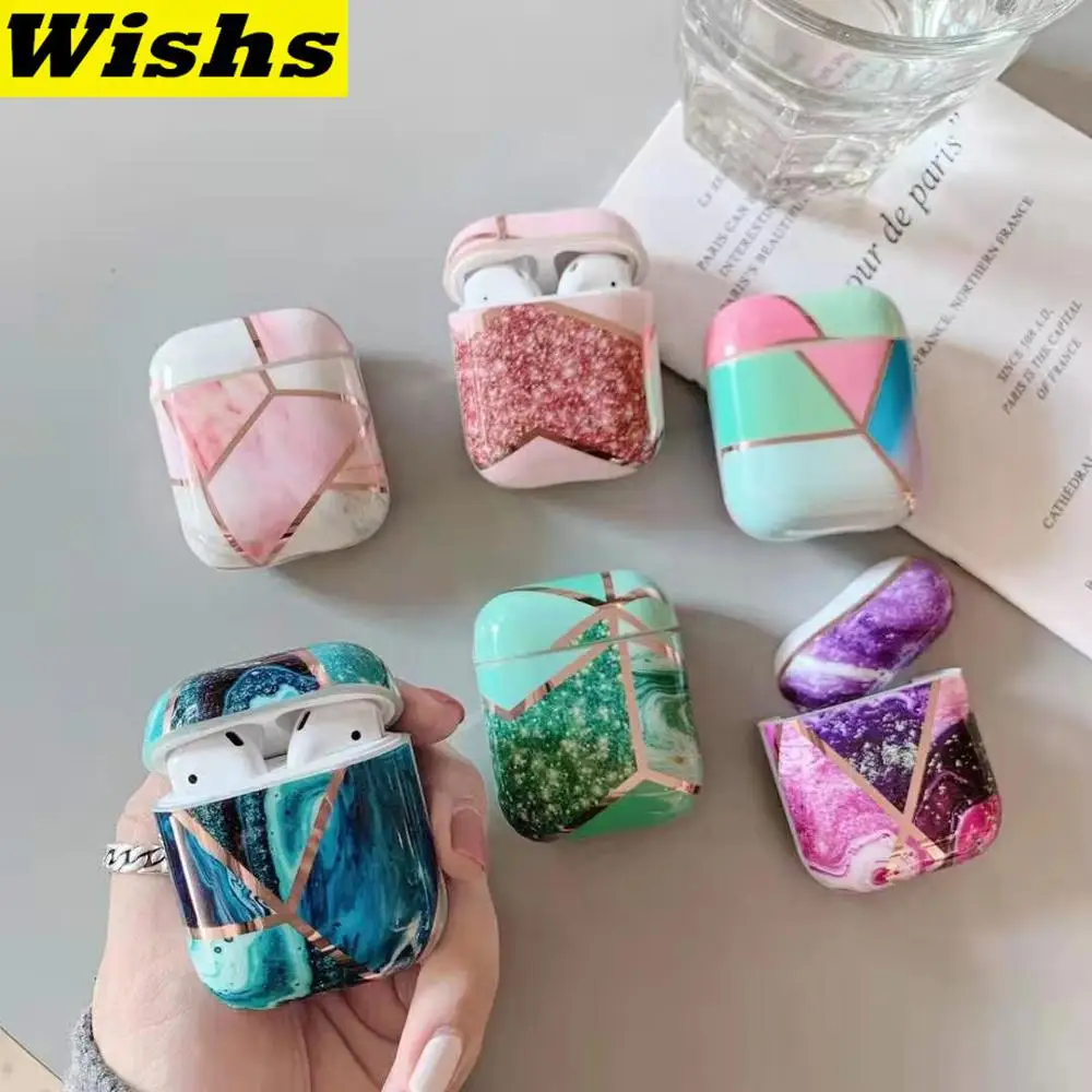 Модные Розовые золотые линии геометрический мрамор наушники гарнитура аксессуары IMD чехол для Airpods 1 & 2 беспроводной Bluetooth сумки для гарниту...