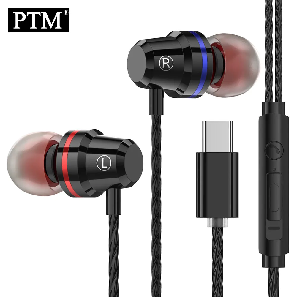 Металлические наушники PTM Bass usb-гарнитура type C наушники с микрофоном для мобильного телефона Xiaomi huawei PC Gaming