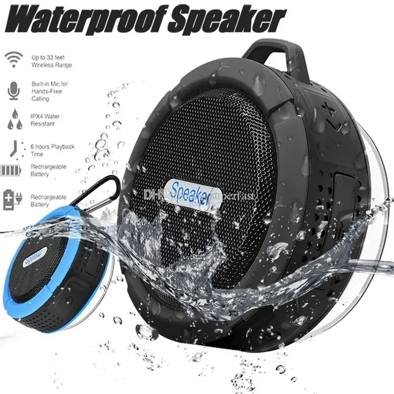 Водонепроницаемый Bluetooth Динамик душ Динамик C6 с сильным драйвер длинные Срок службы батареи и микрофоном и съемные присоски