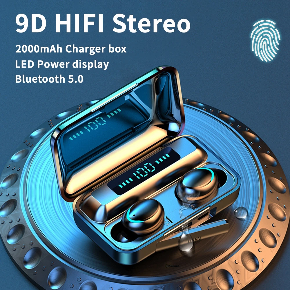 Наушники 9D с сенсорным управлением, стерео наушники с шумоподавлением, игровая гарнитура, спортивные водонепроницаемые наушники, LED зарядное устройство, коробка 2000 мАч