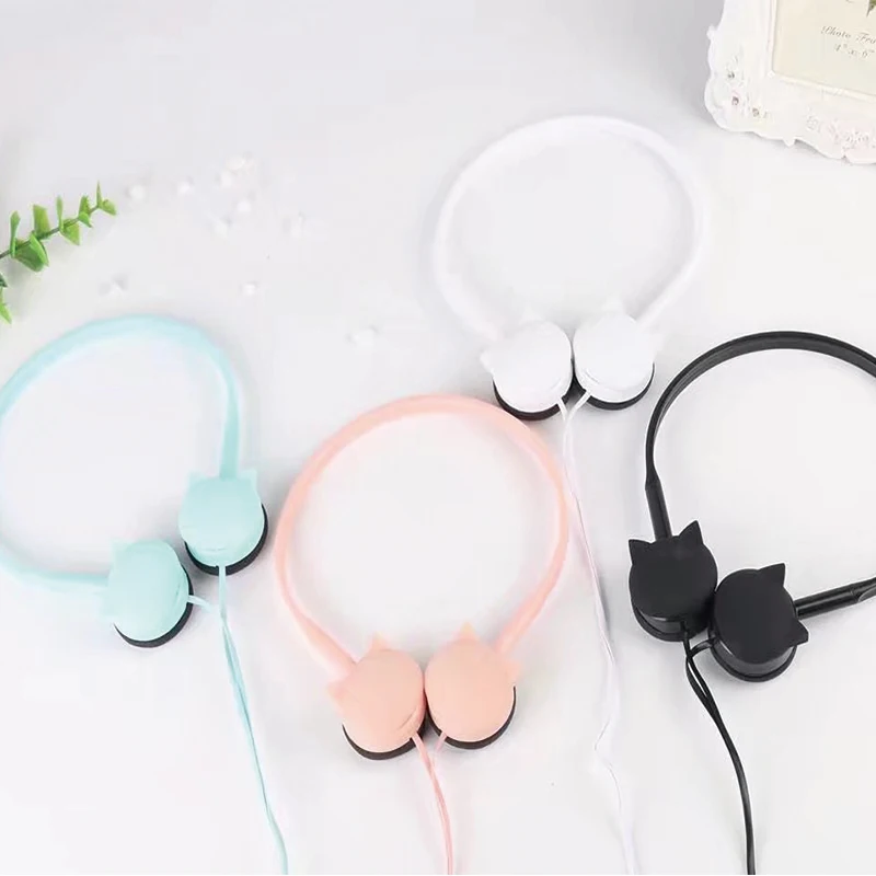 Милые Мультяшные наушники с кошачьими ушками 3,5 мм проводные наушники Kitty Музыкальная гарнитура подарок для девочек наушники с микрофоном д...