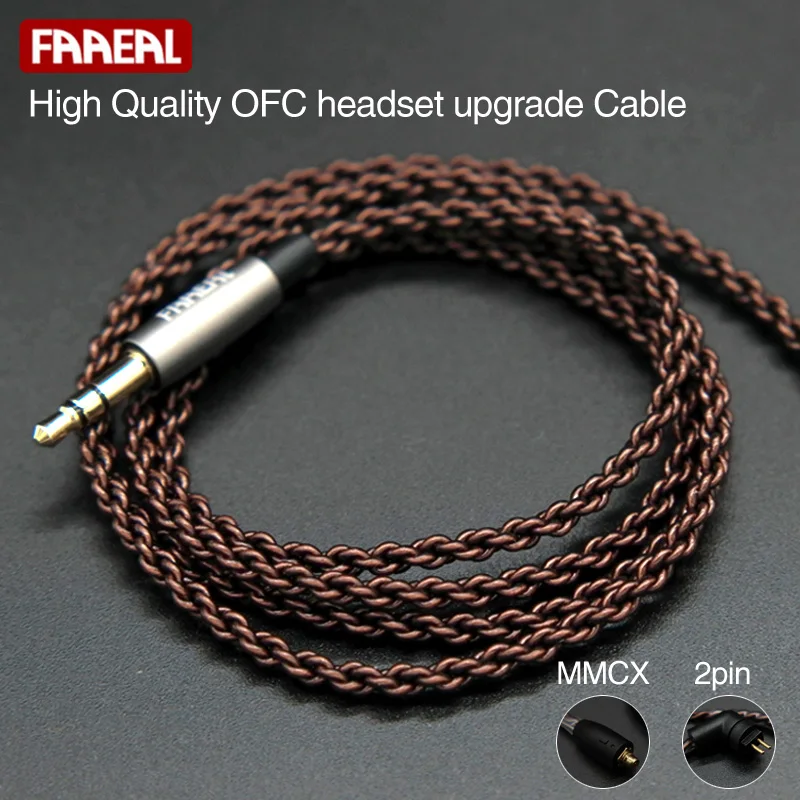 Faaeal 1,2 м Высокое качество OFC наушники обновления кабель с MMCX/2 контактный разъем для SE215 315 425 535/для KZ Знч/СЖД/ZS10/AS10